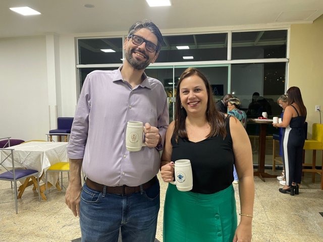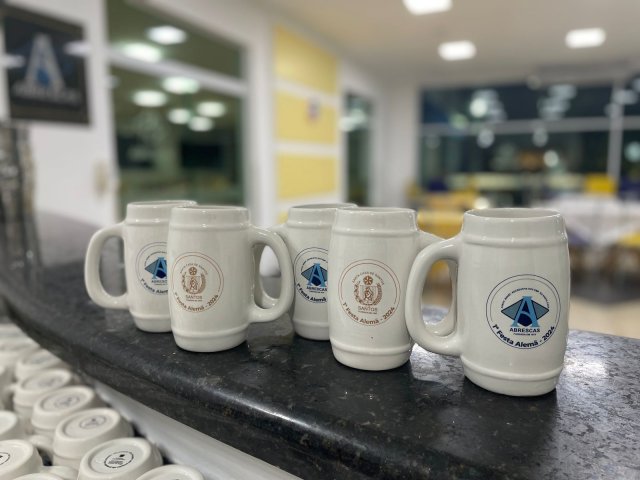 Todos os convidados ganharam uma caneca personalizada da 1ª Festa Alemã Abrescas Santa Casa, para usar na noite agradável que se seguiu, marcada pela descontração e clima de confraternização.