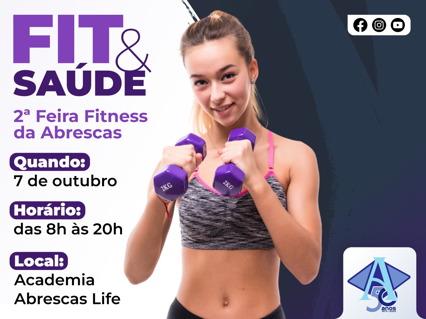 A 2ª Feira Fit & Saúde de da Abrescas já tem data marcada! O evento será no dia 7/10/24, na área externa da academia, das 8h às 19h.
