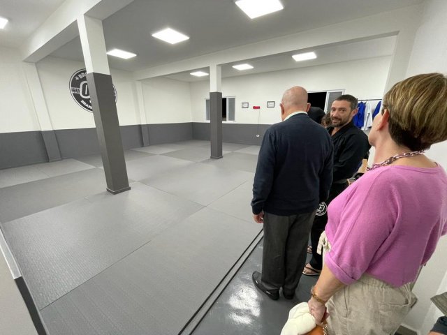 No dia 22, o provedor da Santa Casa de Santos, Ariovaldo Feliciano, acompanhado de sua esposa, Eliana Lopes Feliciano, e o presidente da Abrescas, Paulo Ramos, fizeram a entrega oficial do espaço de artes marciais da Abrescas.