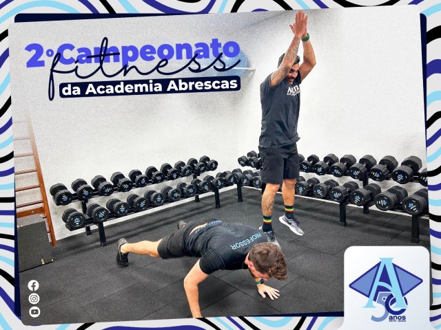 No período de 15/7 a 20/7 a Academia Abrescas promoverá o 2º Campeonato Fitness. Nesta edição, as provas vão exigir um bom condicionamento físico, pois serão nas modalidades de pulos de corda e burpee.