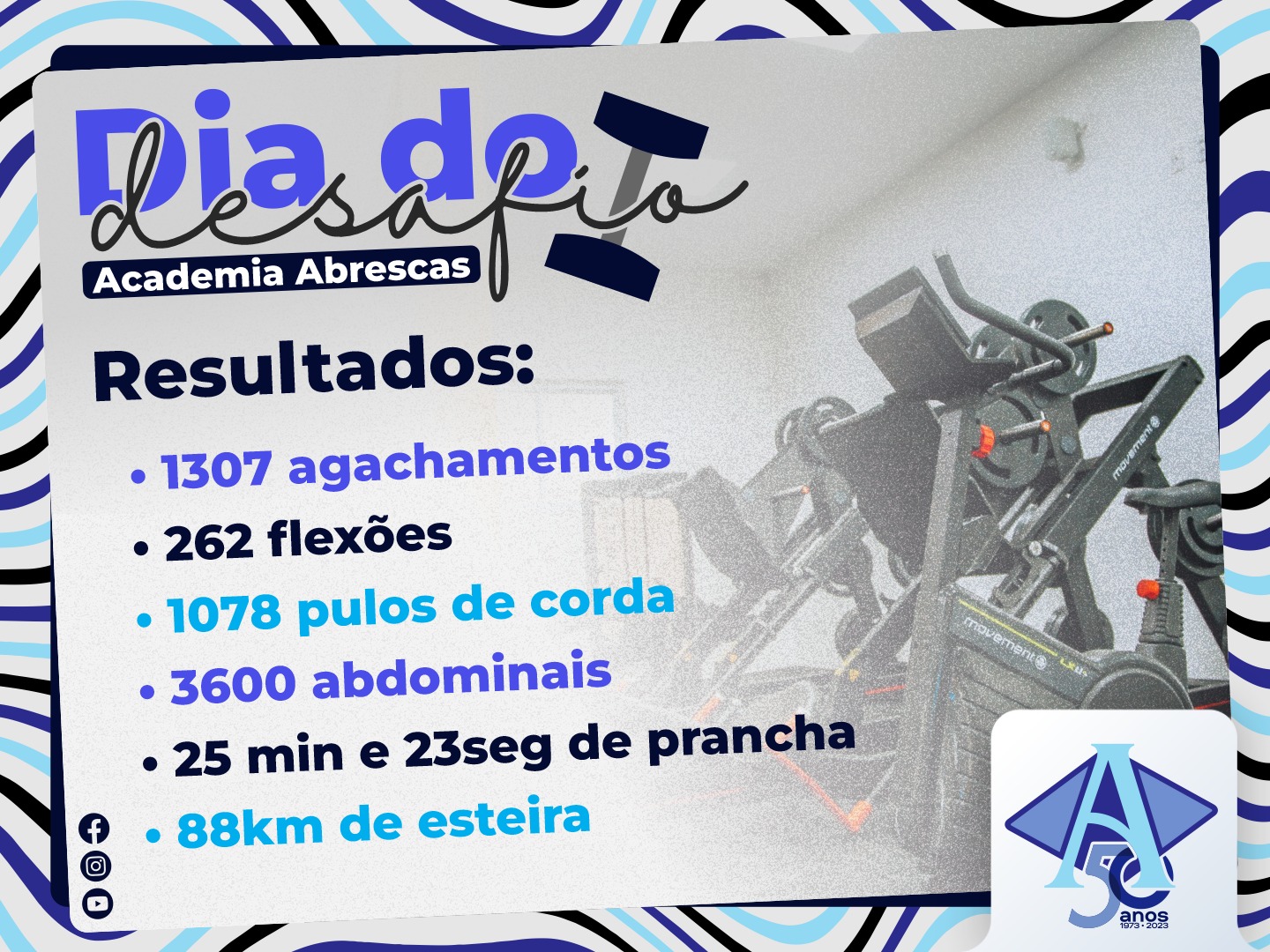 No Dia do Desafio (29/5), a Academia Abrescas incentivou os alunos à prática de diversas modalidades, proporcionando um dia totalmente fitness.