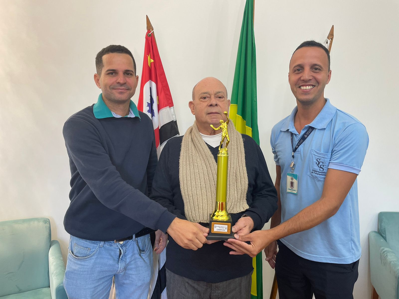 Representando o time masculino de vôlei da Abrescas, o atleta e colaborador da Santa Casa de Santos, Thiago Santos, esteve com o provedor da Santa Casa de Santos @santacasadesantos , Ariovaldo Feliciano, e o presidente da Abrescas, Paulo Ramos, para formalizar a entrega do troféu de campeão do 2º Torneio Vida Nova, conquistado no dia 10/6, no Centro Esportivo Armando Cunha em Cubatão.