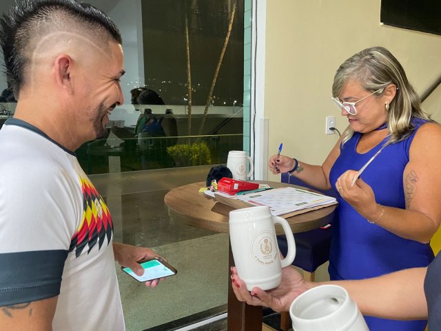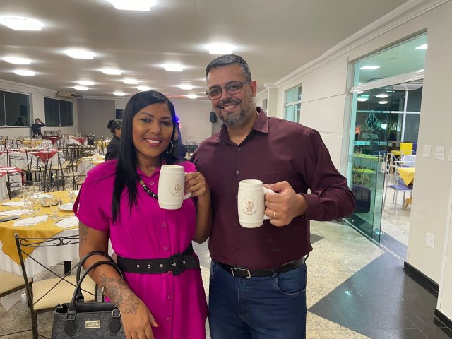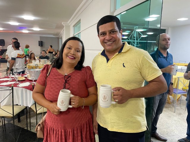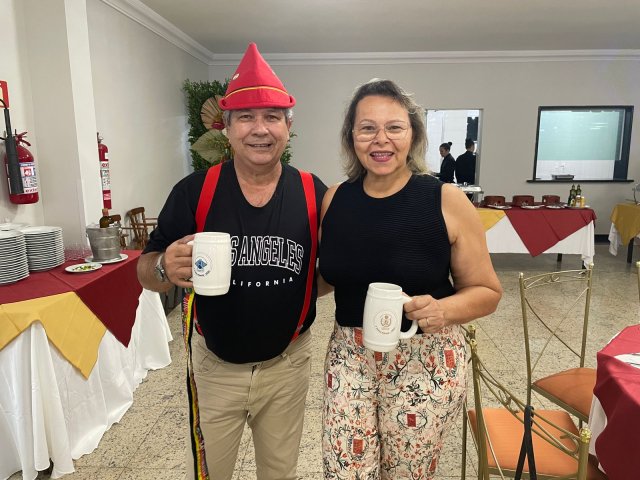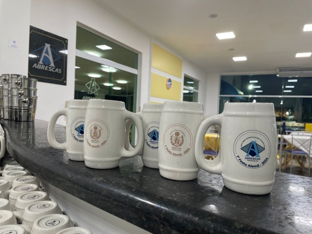 Todos os convidados ganharam uma caneca personalizada da 1ª Festa Alemã Abrescas Santa Casa, para usar na noite agradável que se seguiu, marcada pela descontração e clima de confraternização.