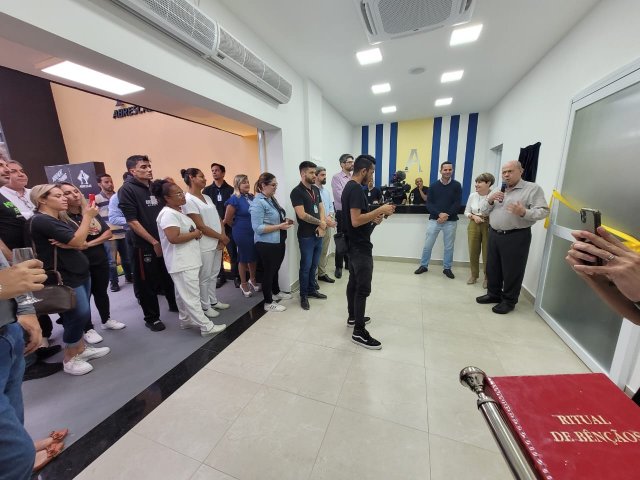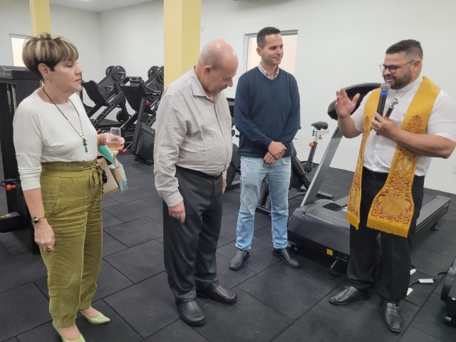 A ABRESCAS inaugurou a tão esperada academia no dia 29/9. A entrega oficial do equipamento foi feita pelo provedor da Santa Casa de Santos, Ariovaldo Feliciano, junto ao presidente da Abrescas, Paulo Ramos de Carvalho. O Frei Denilson, do Santuário do Valongo, abençoou as novas instalações.