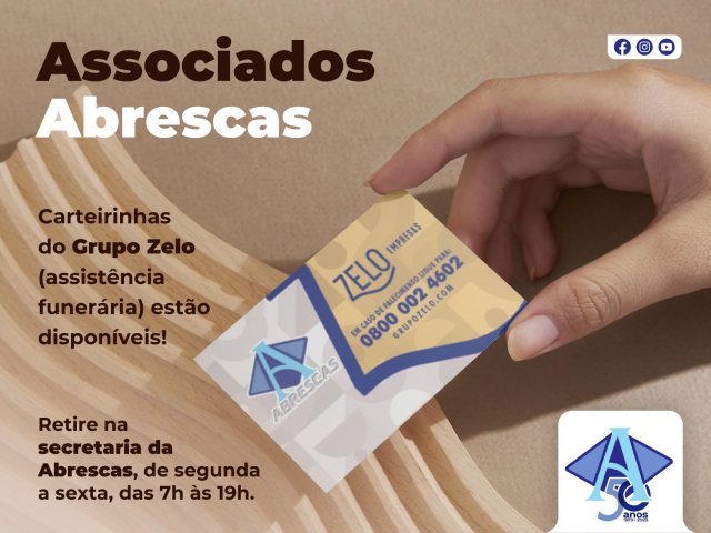 As carteirinhas do novo plano estão disponíveis para retirada na secretaria da Abrescas, de segunda a sexta, das 7h às 19h.