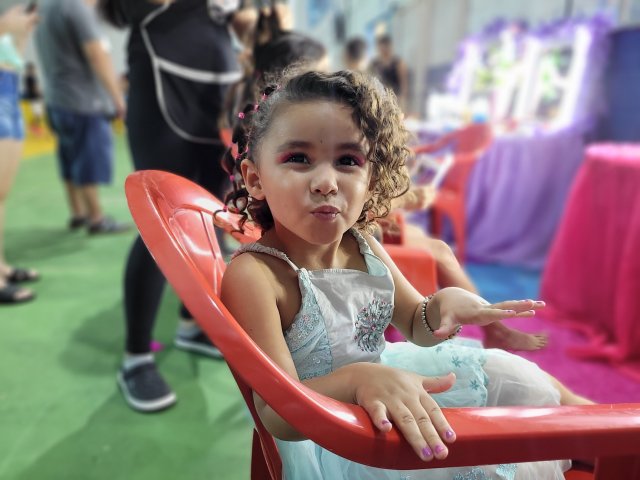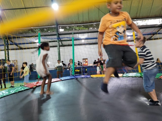 Para dar energia, tinha cachorro quente, pipoca, churros e algodão doce. Aliás, haja energia para os pais, porque a criançada pegou fogo com tanto entretenimento.